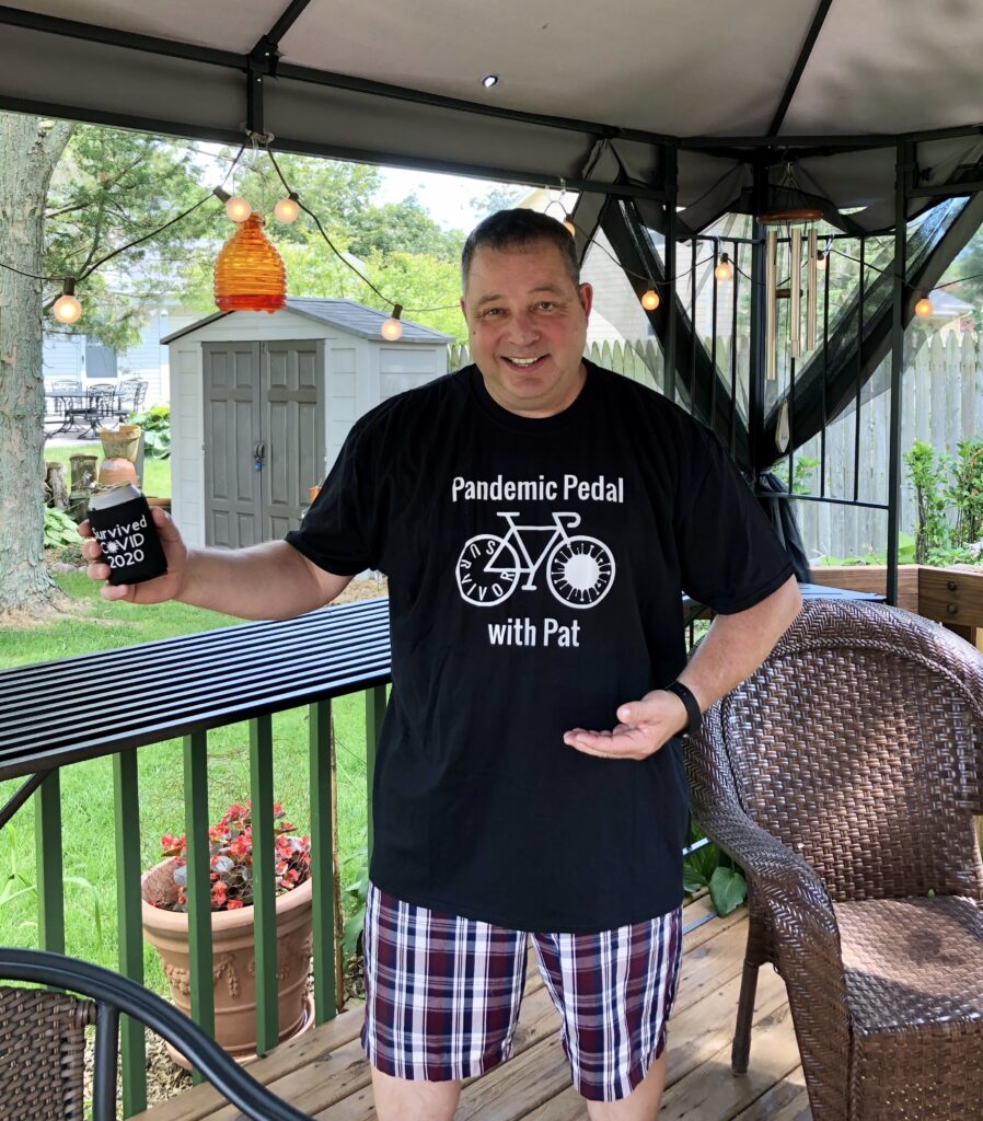 The day ended with a post-ride, outdoor celebration which took all the precautions (gloves, masks, hand sanitizer, etc.) to keep folks safe. We had a hot dog bar, a variety of adult beverages (including FVCK COVID beer and MD 20/20) and Pat finally took revenge on a Coronavirus piñata filled with HCQ (aka hand sanitizer).